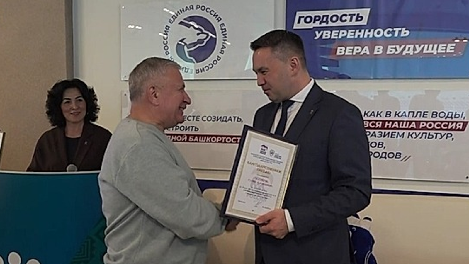 В Уфе состоялось награждение волонтеров и предпринимателей за гуманитарную помощь участникам СВО. В региональном штабе общественной поддержки «Единой России» председатель Госсобрания Республики Башкортостан Константин Толкачёв вручил депутатам, генеральным директорам организаций, партнёрам, организаторам и волонтёрам благодарственные письма.